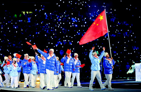 当地时间2月6日,2026年米兰-科尔蒂纳冬奥会开幕式在意大利米兰圣西罗体育场举行。图为中国体育代表团在开幕式上入场。