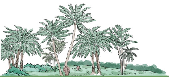 那天,我独自走在小道上,突然沉闷的鼻息声从灌木深处传来,接着一个庞大的金黄色轮廓,缓缓从棕榈树后冒出,原来是一头黄牛!接着又是一头,后面还跟着蹒跚的小牛犊,一共五头。它们不像我记忆中在田埂上奋力拉犁的耕牛,而是带着一种主人公般闲适的神气,在自己的领地自由踱步。