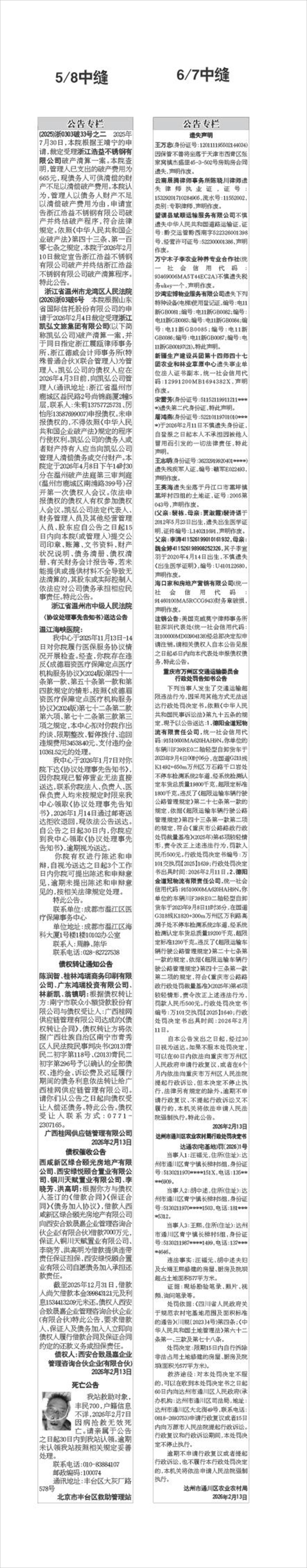 债权催收公告