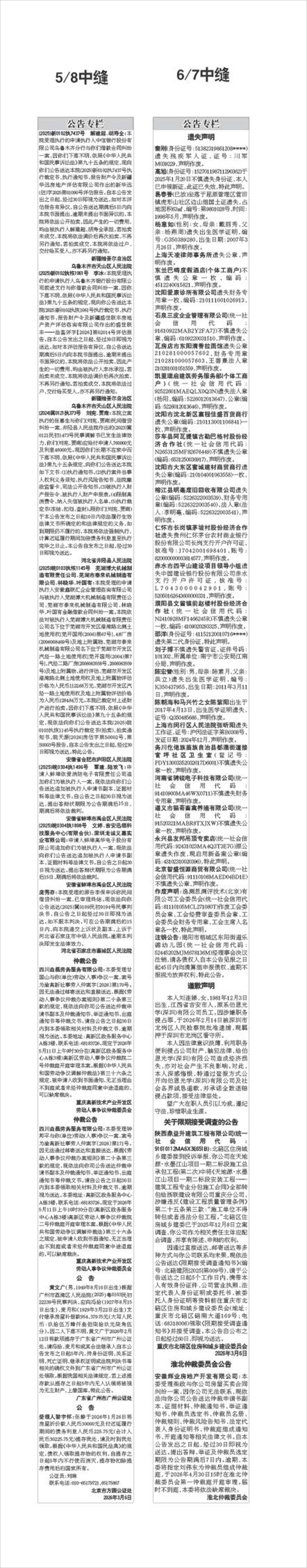 (2025)新0102执7437号 解建超、胡寿全:本院受理执行的申请执行人中信银行股份有限公司乌鲁木齐分行与你们借款合同纠纷一案,因你们下落不明,依照《中华人民共和国民事诉讼法》第九十五条的规定,现向你们公告送达本院(2025)新0102执7437号执行裁定书、执行通知书、报告财产令及新疆华远房地产评估有限公司作出的新华远(估)字2025第01090号评估报告。自本公告发出之日起,经过30日即视为送达。如对本评估报告有异议,自公告送达期满后5日内向本院书面提出,逾期未提出书面异议的,本院将依法公开拍卖,因此产生的一切费用,均由被执行人解建超、胡寿全承担。若拍卖未成交,本院将依法调价后再次拍卖,不再另行通知。若拍卖成交,本院将依法过户、交付给买受人,亦不再另行通知。