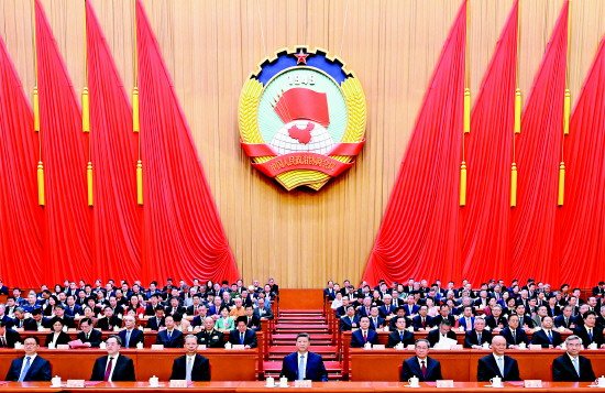 3月11日上午,中国人民政治协商会议第十四届全国委员会第四次会议在北京人民大会堂闭幕。全国政协主席王沪宁主持闭幕会并讲话。 新华社记者 黄敬文 摄