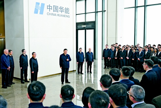 随后,习近平来到中国华能集团有限公司考察。2025年10月,华能集团总部及相关子公司1000多名员工迁驻雄安新区。习近平走进企业运营监控与应急指挥中心,听取企业搬迁、产业布局、创新发展等情况介绍,察看企业实时运营数据和远程图像。他强调,要以迁入雄安新区为契机,激发企业干部职工创新创业的积极性主动性,为加快建设新型能源体系、建设能源强国作出新贡献。