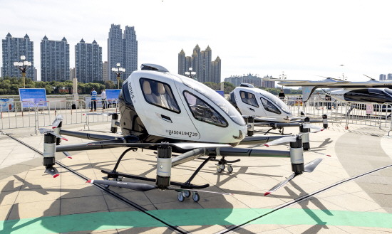 图为采用无人驾驶技术的某品牌航空器进行展示,让人们感受未来城市“空中出租车”的快捷。 CFP供图