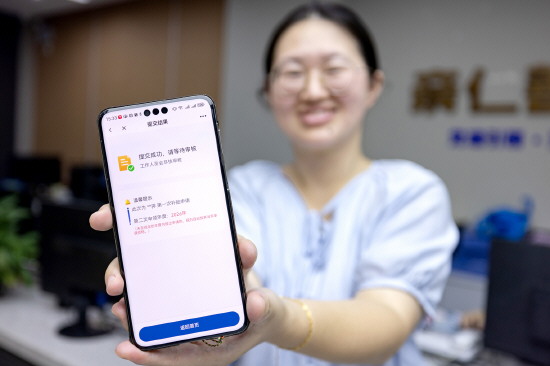 图为浙江湖州一位居民展示育儿补贴申领页面。 CFP供图