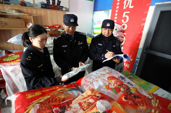 ▲ 近日,江西省分宜县公安局联合县农粮局综合执法队深入辖区农资产品经营点,围绕种子、农药、化肥等重点农资产品进、销、存等环节开展执法检查,严厉打击假劣农资坑农害农行为。图为民警会同县农粮局执法人员开展联合执法检查。