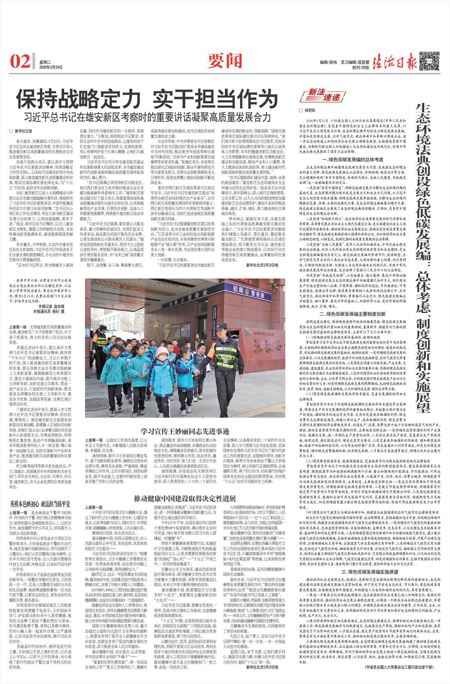 支持雄安新区高质量建设和发展。雄安新区广大干部要勇于担当,扑下身子抓落实,努力向党和人民交出合格答卷。