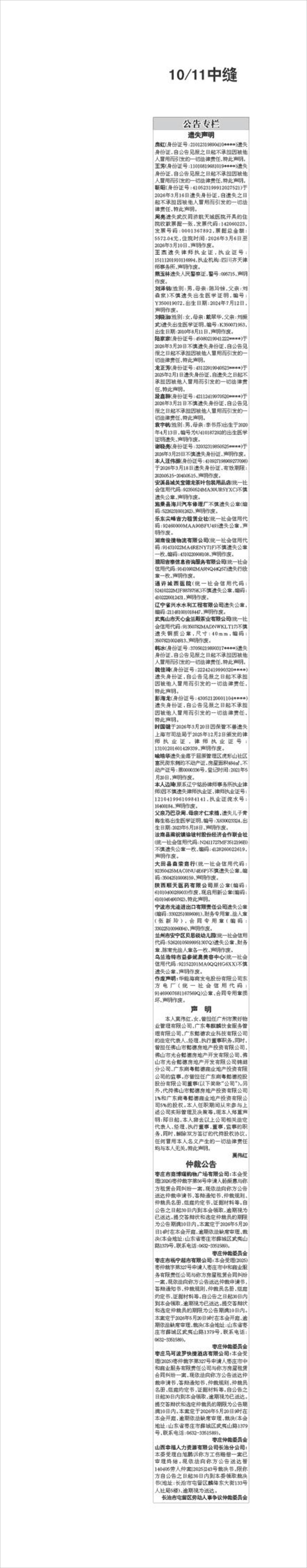 龙正芳(身份证号:43122919940523****)于2025年2月1日遗失身份证,自遗失之日起不承担因被他人冒用而引发的一切法律责任,特此声明。