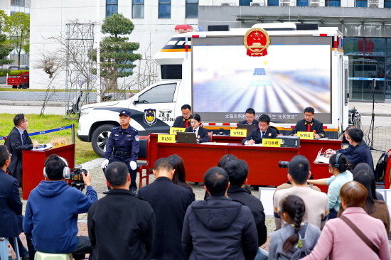 近日,重庆市开州区人民法院依托“5G车载便民法庭”到开州智能家居产业园开展巡回审判,现场化解园区企业与某发电公司供用电合同纠纷。图为巡回审判现场。