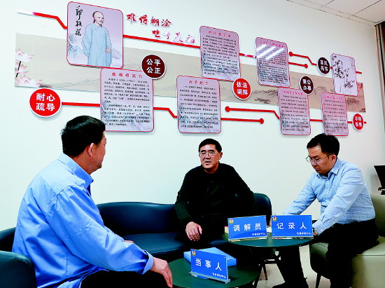 3月9日,濮阳市范县综治中心“板桥调解室”调解员正在调处一起邻里纠纷。