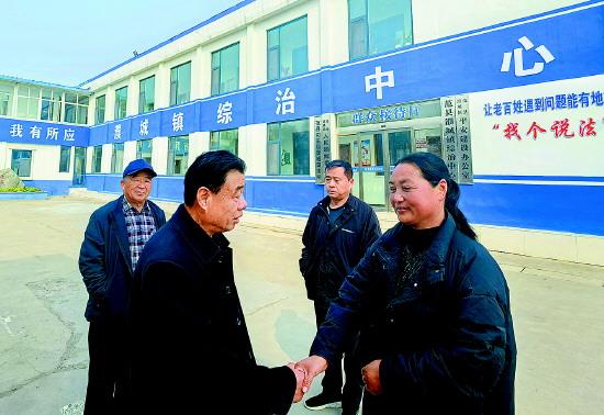 3月10日,濮阳市范县濮城镇综治中心成功调解一起邻里纠纷后,当事人向工作人员表示感谢。