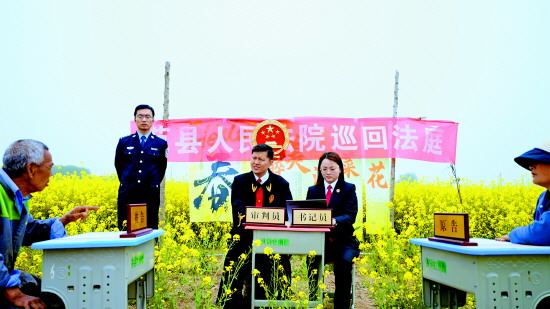 3月9日,入驻濮阳市范县综治中心的范县人民法院办案团队坚持开展巡回审判,在田间地头调解案件。