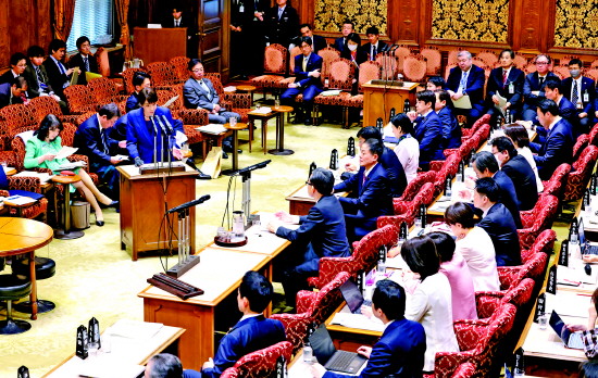 图为当地时间2026年3月25日,日本首相高市早苗在国会大厦出席参议院预算委员会密集审议会议并回答提问。