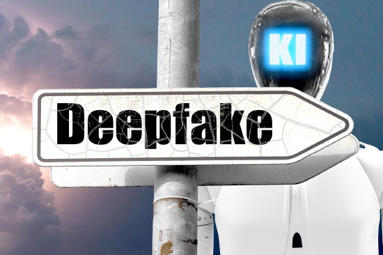 图为当地时间2026年3月12日,在德国巴伐利亚州明德海姆,写有Deepfake字样的标识与AI象征形象并置,呈现关于人工智能生成视频与声音的讨论。深度伪造技术可操纵信息,为媒体与社会带来新挑战。 CFP供图