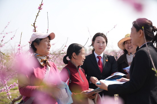 图③ 近日,河南省新乡市原阳县人民法院开展“司法护航文旅”法治宣传活动,助力乡村振兴与文旅融合。图为3月30日,该院桥北人民法庭干警向游客发放民法典等普法宣传册。