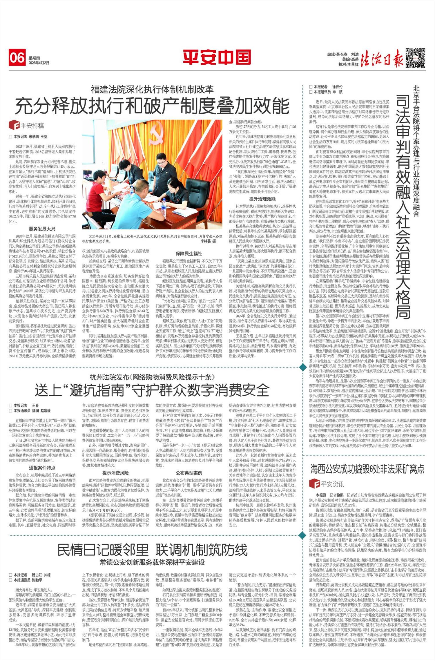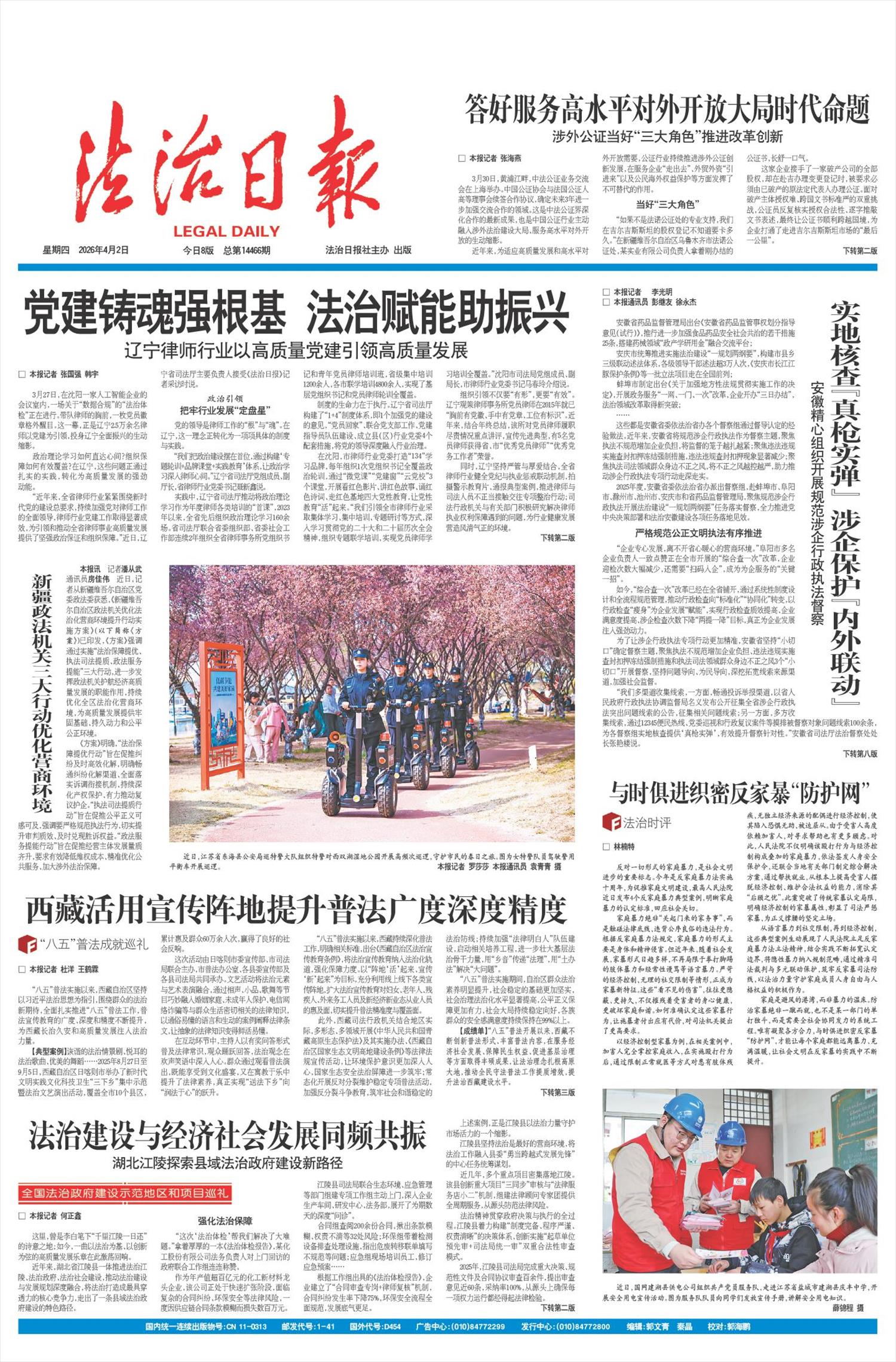 本报讯 记者潘从武通讯员房佳伟近日,记者从新疆维吾尔自治区党委政法委获悉,《新疆维吾尔自治区政法机关优化法治化营商环境提升行动实施方案》(以下简称《方案》)已印发,《方案》强调通过实施“法治保障提优、执法司法提质、政法服务提能”三大行动,进一步发挥政法机关护航经济高质量发展的职能作用,持续优化全区法治化营商环境,为高质量发展提供牢固基础、持久动力和公平公正环境。