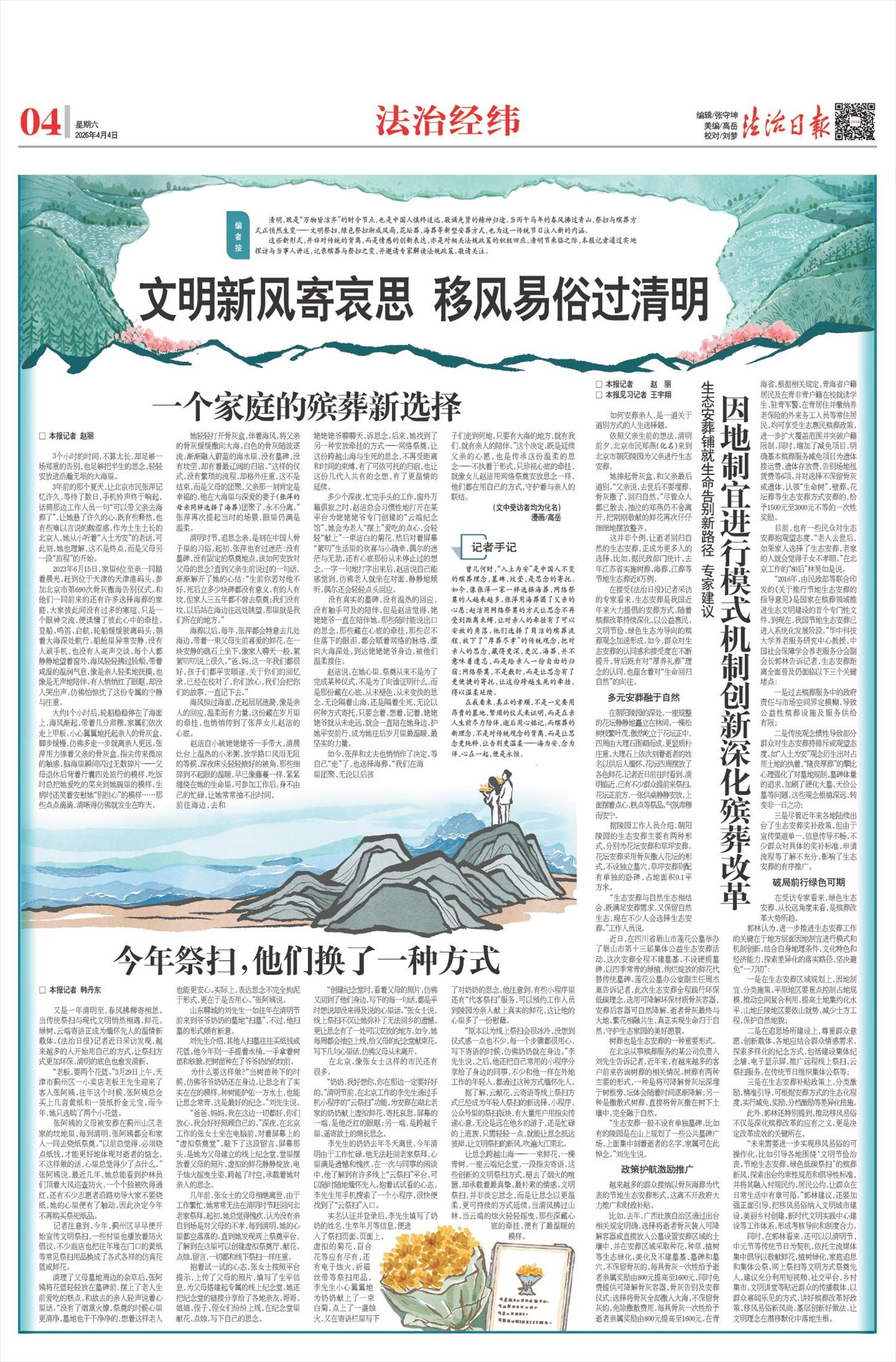 又是一年清明至,春风拂柳寄相思。当传统祭扫与现代文明悄然相遇,鲜花、绿树、云端寄语正成为缅怀先人的温情新载体。《法治日报》记者近日采访发现,越来越多的人开始用自己的方式,让祭扫方式更加环保,清明的底色也愈发清新。