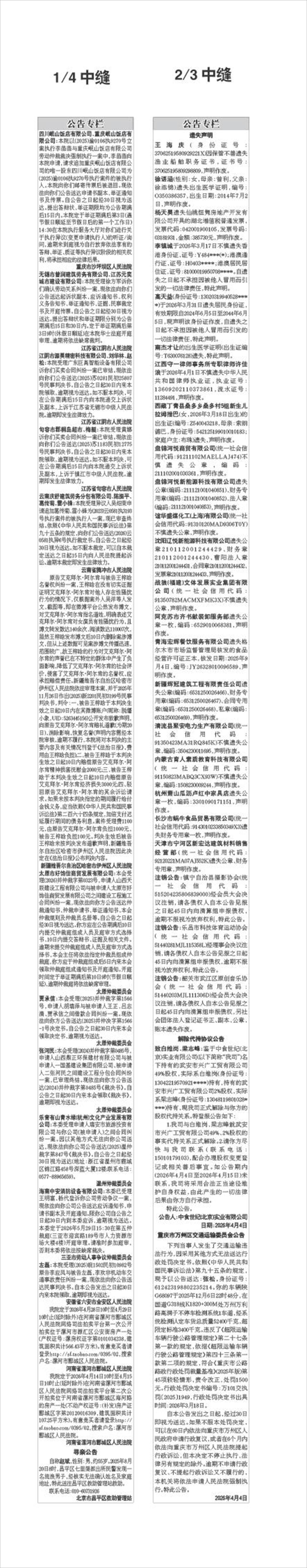 四川岷山饭店有限公司、重庆岷山饭店有限公司:本院以(2025)渝0106执9270号立案执行李苗苗与重庆岷山饭店有限公司劳动仲裁裁决强制执行一案中,李苗苗向本院申请,请求追加重庆岷山饭店有限公司的唯一股东四川岷山饭店有限公司为(2025)渝0106执9270号执行案件的被执行人。本院向你们邮寄传票后被退回。现依法向你们公告送达申请书副本、举证通知书及传票。自公告之日起经30日视为送达。提出答辩状、举证期限均为公告期满后15日内。本院定于举证期满后第3日(遇节假日顺延至节假日后的第一个工作日)14:30在本院执行服务大厅对你们进行关于执行异议(变更申请执行人)的听证/询问,逾期未到庭视为自行放弃依法享有的答辩、举证、质证等执行异议阶段的相关权利,将承担相应的法律后果。