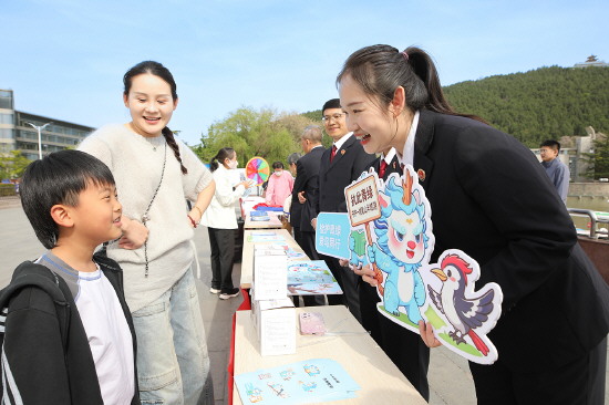 近日,江苏省徐州市人民检察院联合泉山区人民检察院在滨湖公园,开展以“普法护飞羽,共筑生态美”为主题的普法宣传活动,让爱鸟护鸟理念深入人心。图为检察干警向小朋友普及鸟类保护法律知识。 本报记者 罗莎莎 本报通讯员 褚泽言 尚露瑶 摄